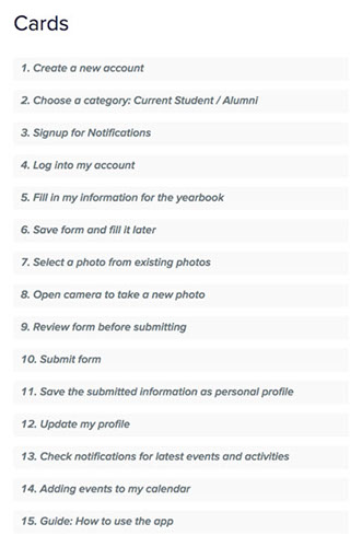 The general idea behind the app is to streamline the process of gathering data for the alumni yearbook. Three main features of the app are: