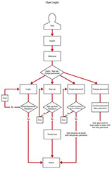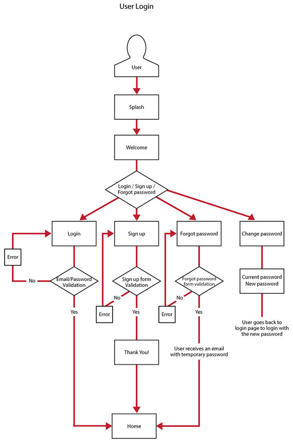 Next, I created user flows to visualize the complete path that user will follow to successfully navigate through the app.