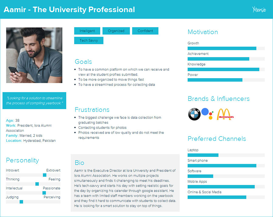 Before even diving into the features and the overall UX of the product, I sent out an online survey to 30 people which were divided in two groups; students and staff members. It was quite challenging to get the students to fill out the survey forms which took around 3 weeks to complete the task. Later, I conducted some interviews on Skype to gain a better understanding of the problem and create a better workflow for people at the university who prepare the yearbook.