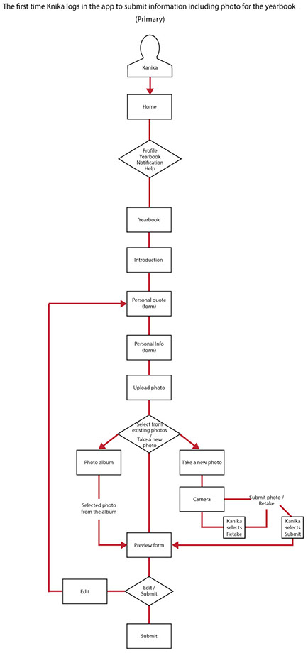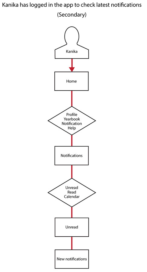 Next, I created user flows to visualize the complete path that user will follow to successfully navigate through the app.